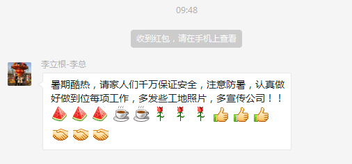 炎熱酷暑老板關(guān)心慰問員工家人們,發(fā)個(gè)紅包提高大家的熱情!